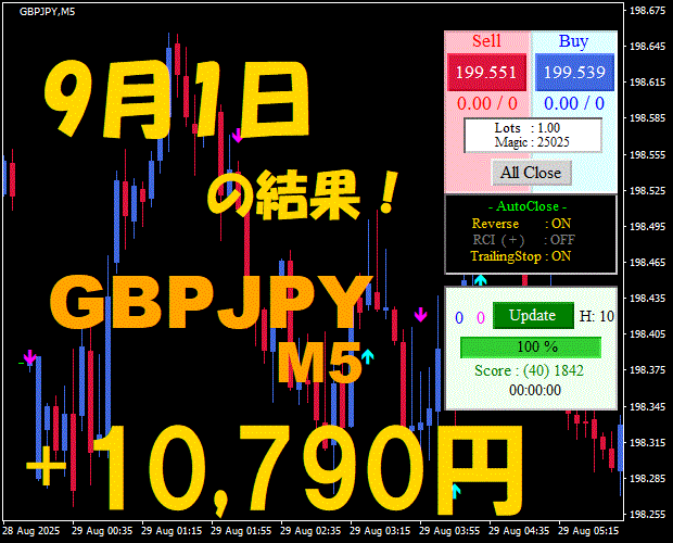 【前日の結果】GBPJPY M5 『ATS-25』9月5日