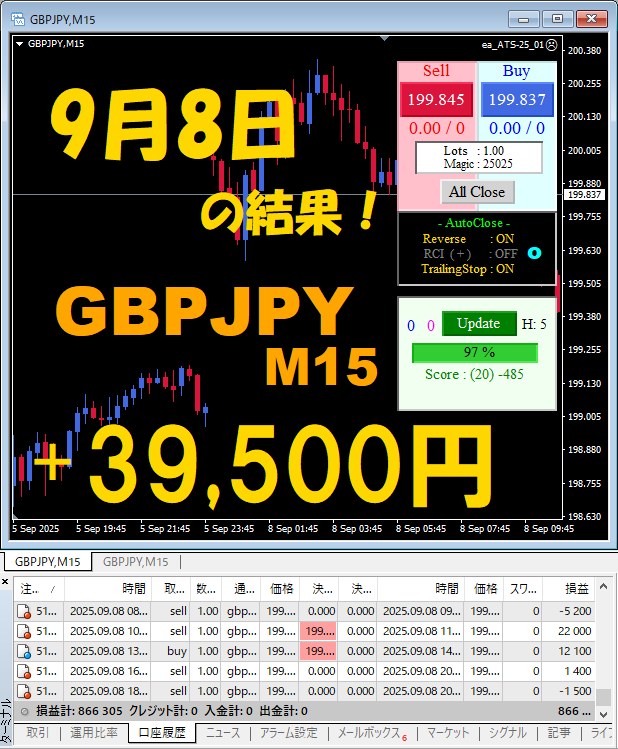 【GBPJPY M15】前日の結果『ATS-25』 9月8日