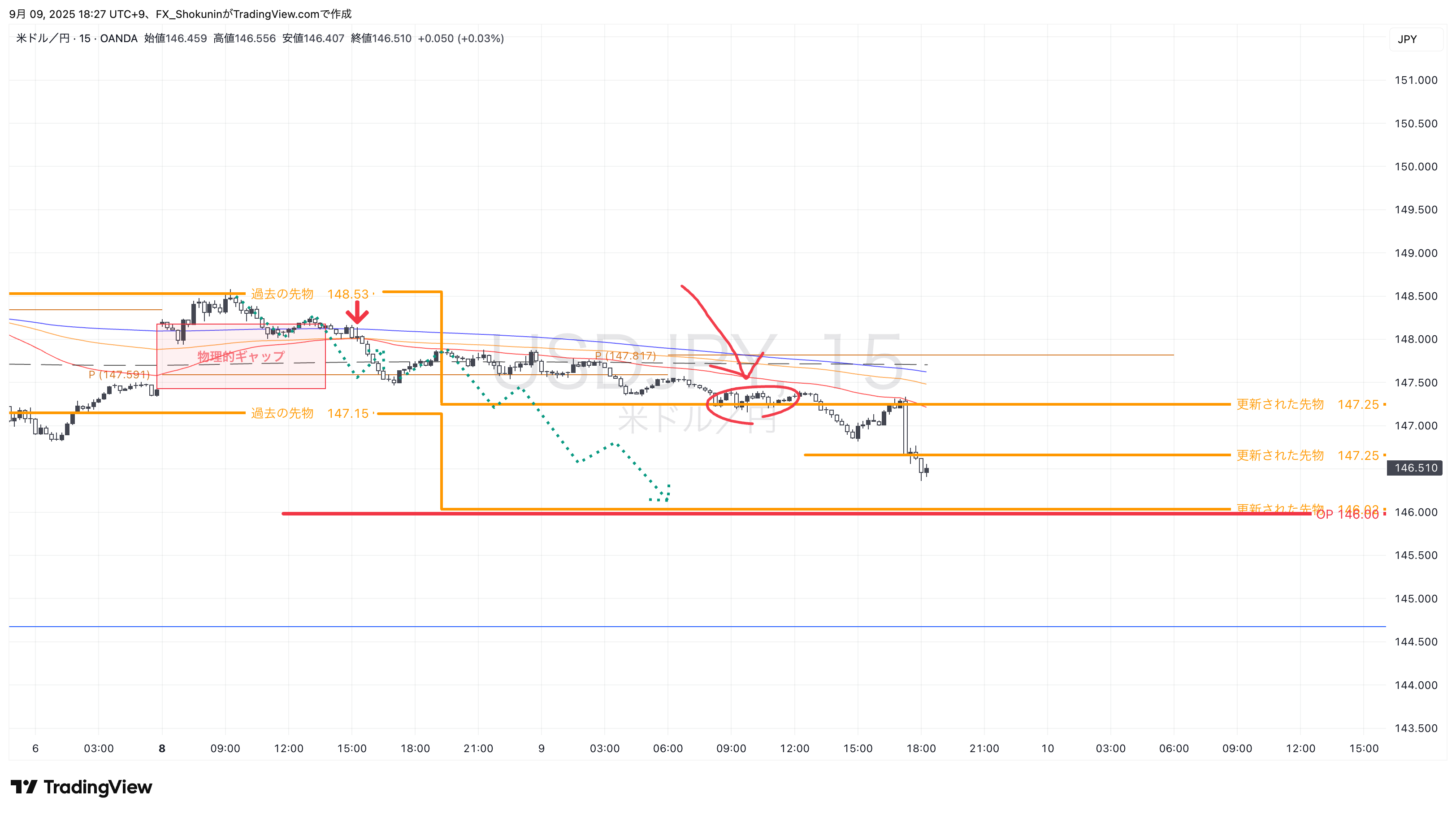 現在は146.50円付近に先物があり、
