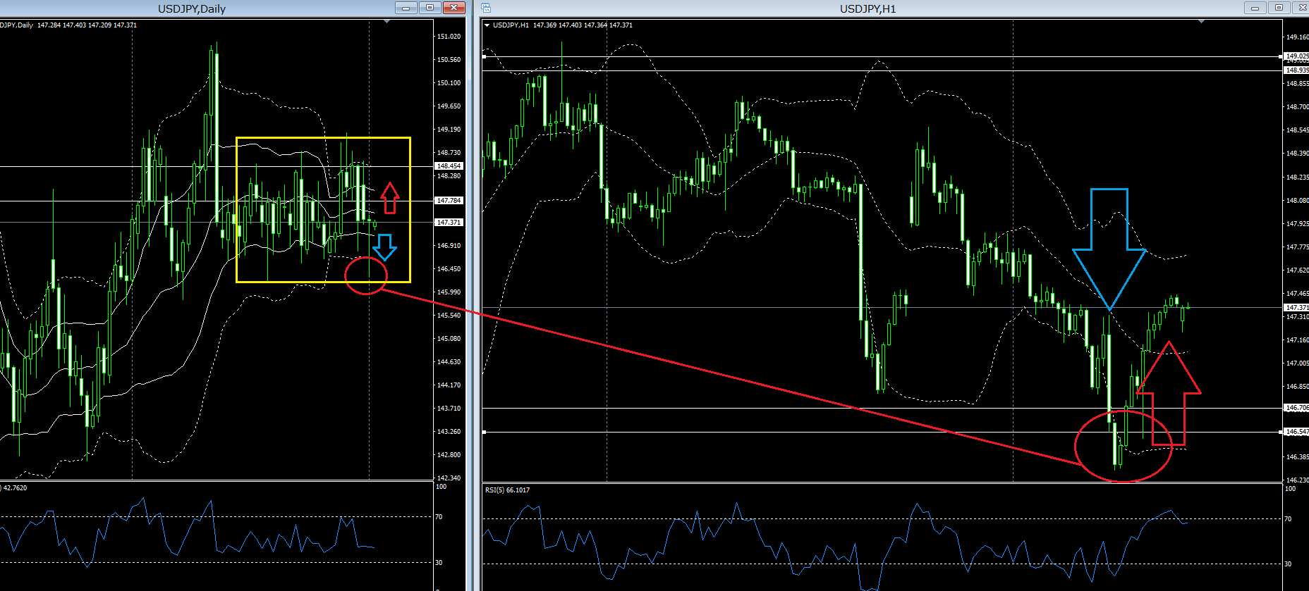 しかし、リバって上昇し、現在は先日来記事にしている日足レンジの真ん中でスタンバイしております。