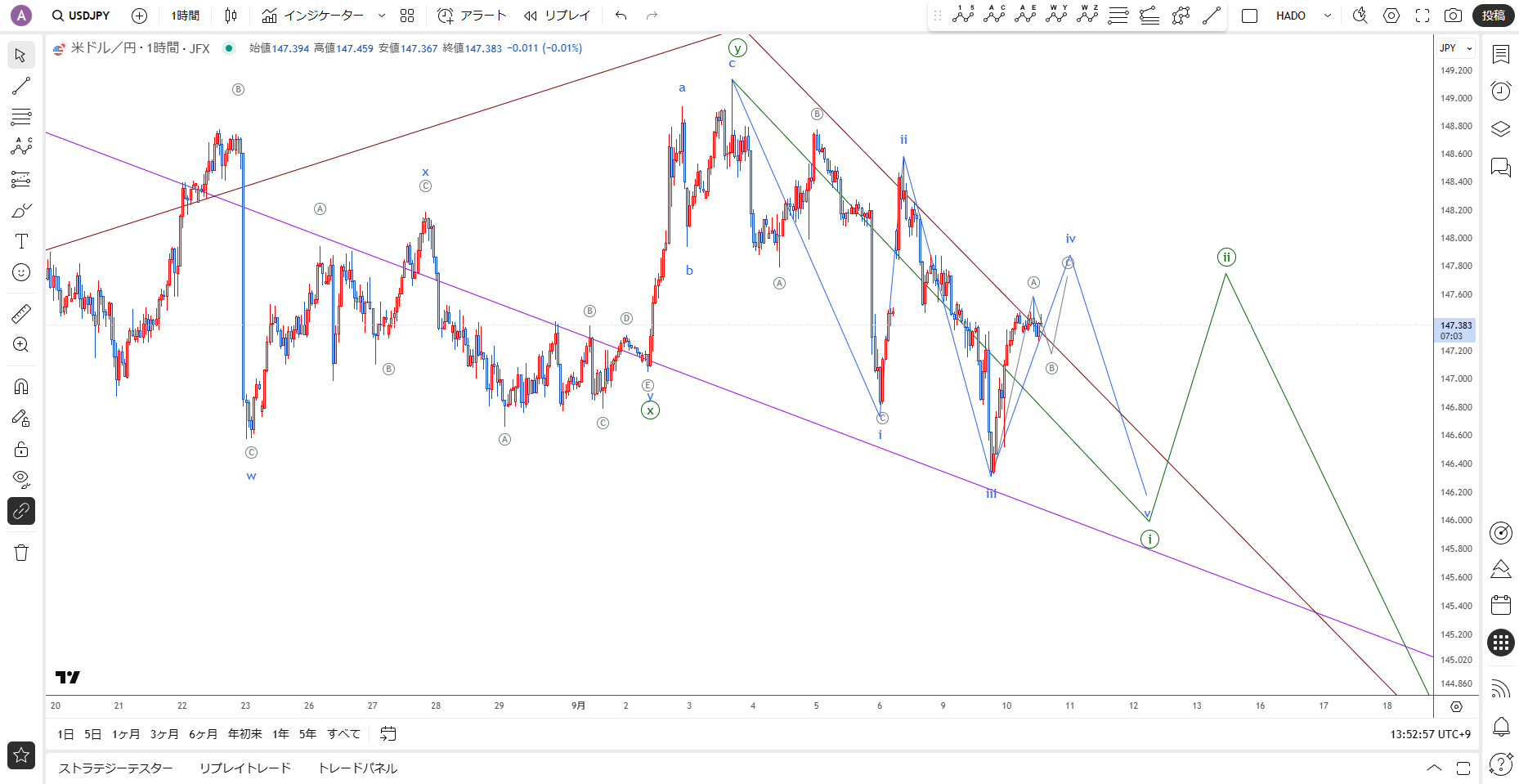 【想定通り進行中】9月10日(水)ドル円のエリオット波動分析