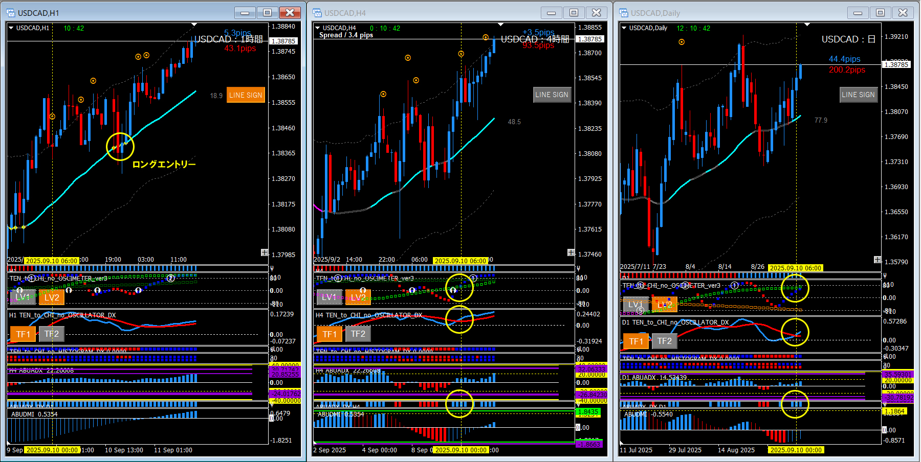 【2025年9月11日】天と地のインジケーターのデイスイング手法検証(ドルカナ)