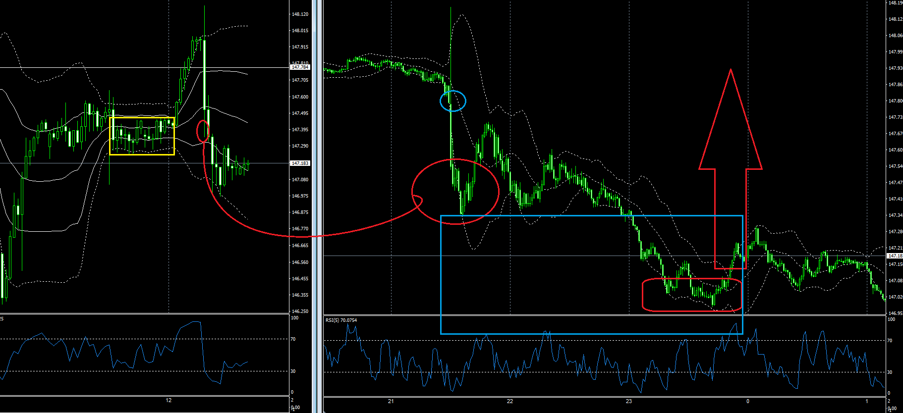 ドル円1時間足&1分足チャート