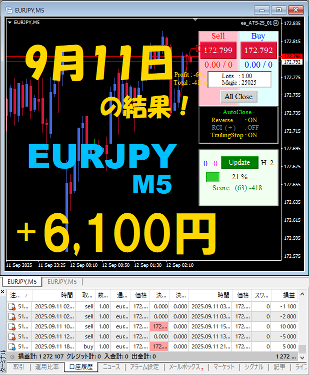 【前日の結果】EURJPY M5 『ATS-25』9月11日