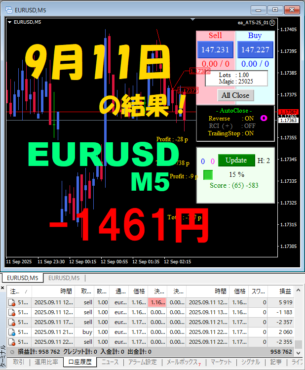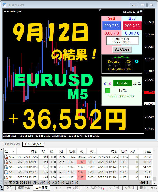 【前日の結果】EURUSD M5 『ATS-25』9月11日、9月12日