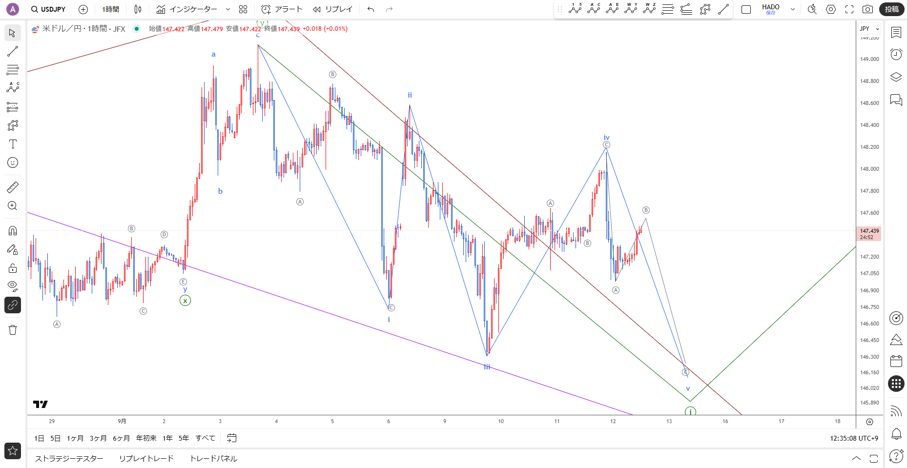 【細部までシナリオ通り】9月12日(金)ドル円のエリオット波動分析