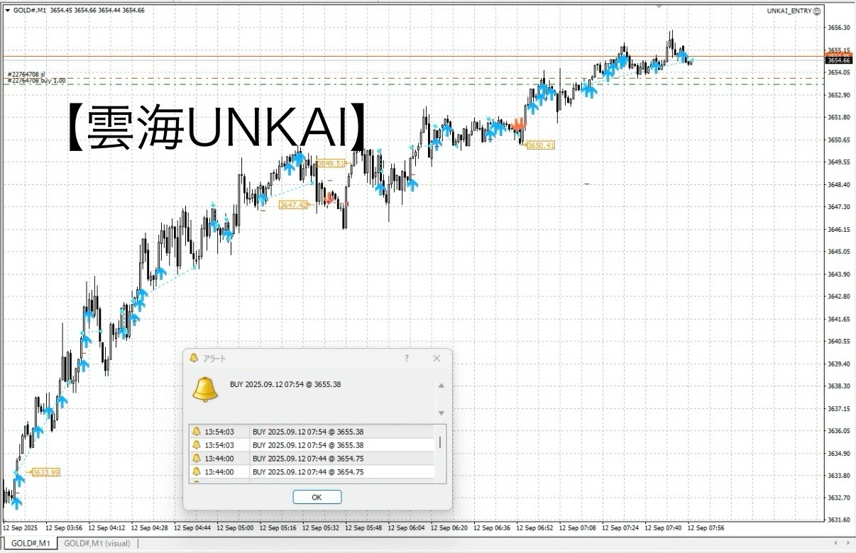 雲海は、良い相場に巡り会えばサイン通りに1分足で300pips以上伸びることがあります。