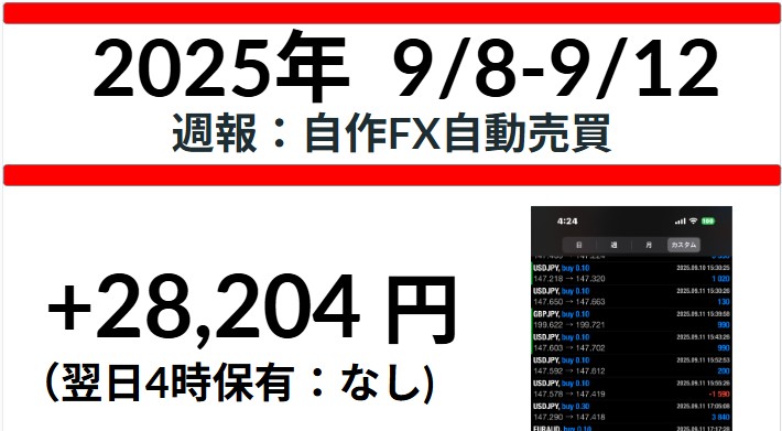 【週報:2025.9.8-2025.9.12】オリジナルEA「PhoenixSoar」の成績報告