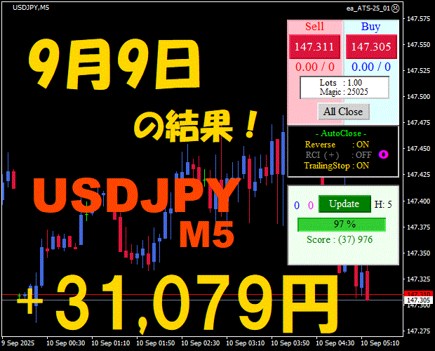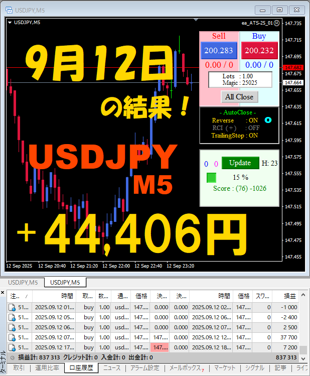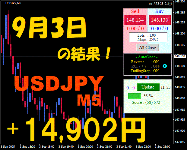 【前日の結果】USDJPY M5 『ATS-25』9月12日