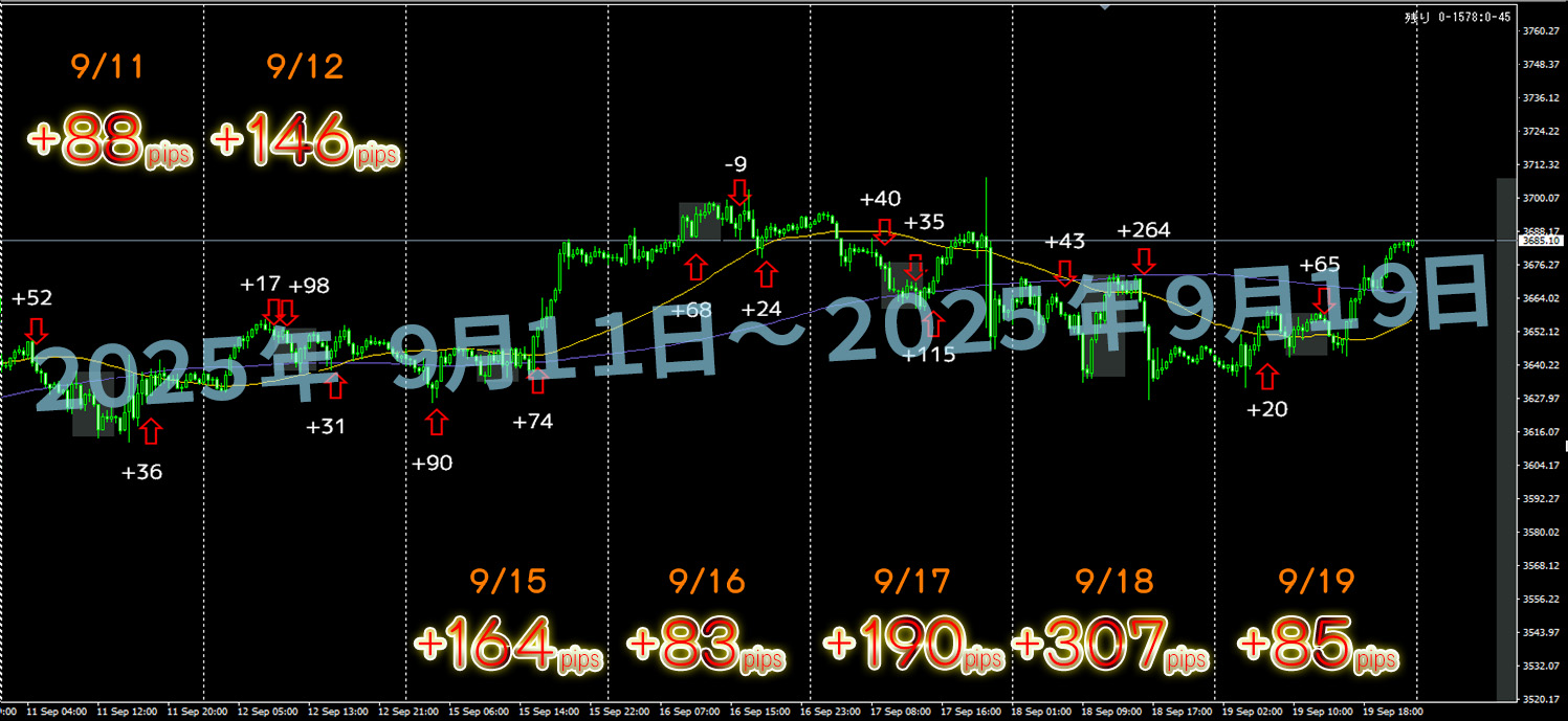 先週+829pips!9/15~9/19の部分をご覧ください。
