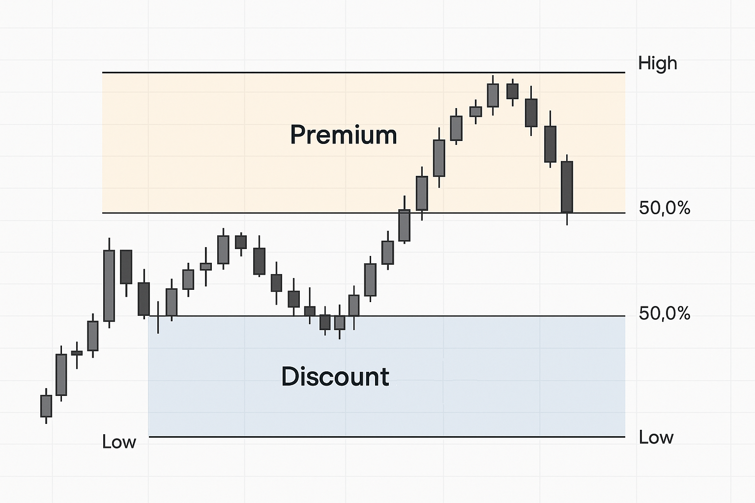 PDA(Premium / Discount Array)は、ICT理論における 割高・割安の基準点 です。これを活用することで:無駄な高値掴み・安値売りを避けられる