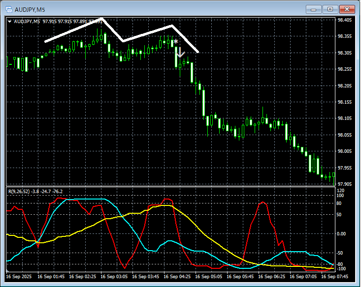 【RCIを極めて勝つ!!】ダブルトップとR1R2S2のサイン 豪ドル円 5分足