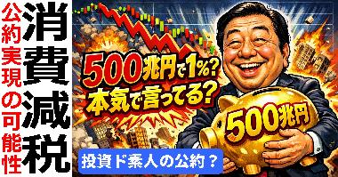 ?この記事は、2026年1月30日に公開されました=>最新の関連記事? 「500兆円を1%増やすだけで、食品の消費税が永久にゼロになる。」もしこんな安易な方法で財源を作ることができるならば、増税も財政議論も不要でしょう。 投資初心者であれば、「オルカンで年1%増やせばよい」などと考...