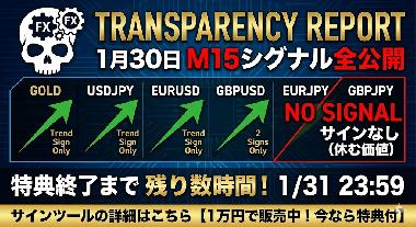 TRANSPARENCY REPORT 1月30日 M15シグナル全公開。「出ない」ことの価値を証明します。 FX-Skullです。 ...