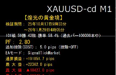 ?1.本日のEA稼働状況(2026年1月30日 金曜日) 今日のゴールド相場は、まさに『荒れた一日』でした? 一気に200pips下落する場面もあり、「大きく下げて→横ばい→さらに下げる」という展開。ボラティリティが非常に高く、ゴールドらしい怖い値動きが見られました。こんな日は裁量トレーダーなら...