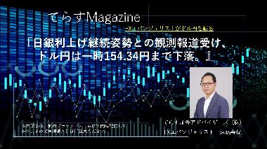 日銀利上げ継続姿勢との観測報道受け、ドル円は一時154.34円まで下落。