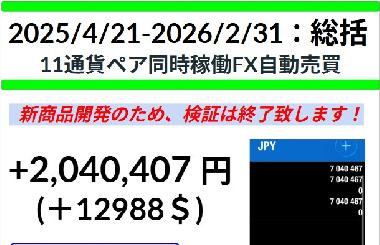 【最終報告】今週11.9万円利益! ほとんど危なげなくトータル215万円利益!!【週報:2026.2.9-2026.2.13】オリジナルEA「PhoenixSoar」の成績