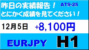 【前日の結果】EURJPY H1 / M5 『ATS-25』12月5日