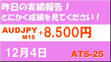 【AUDJPY M15】前日の結果『ATS-25』 12月4日