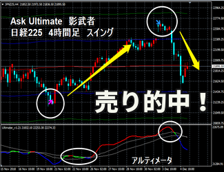 日経225戻り天井で売りサイン!乱高下を的確に見抜いたインジケーター!Ask Ultimate 影武者