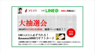 【コウスケ公式LINE@】登録で5大特典ページへご招待!