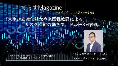 米中対立激化懸念や米国株軟調によるリスク回避の動きで、ドル円3日続落。