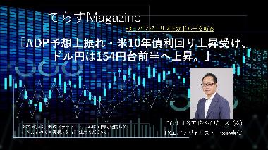 ADP予想上振れ・米10年債利回り上昇受け、ドル円は154円台前半へ上昇。