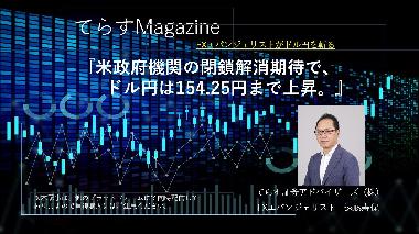 米政府機関の閉鎖解消期待で、ドル円は154.25円まで上昇。
