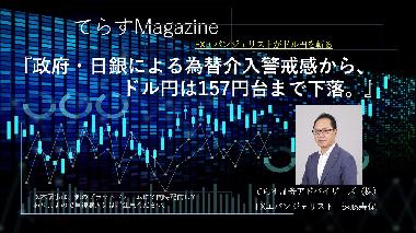 政府・日銀による為替介入警戒感から、ドル円は157円台まで下落。のレビュー