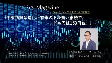 中東情勢緊迫化、有事のドル買い継続で、ドル円は159円台。