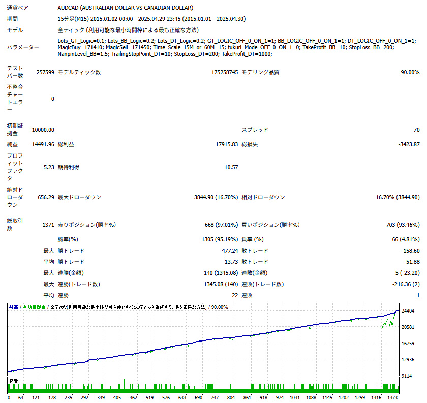 ◎新バージョンのバックテスト状況(2015/1/1 ~ 2025/4/30)
