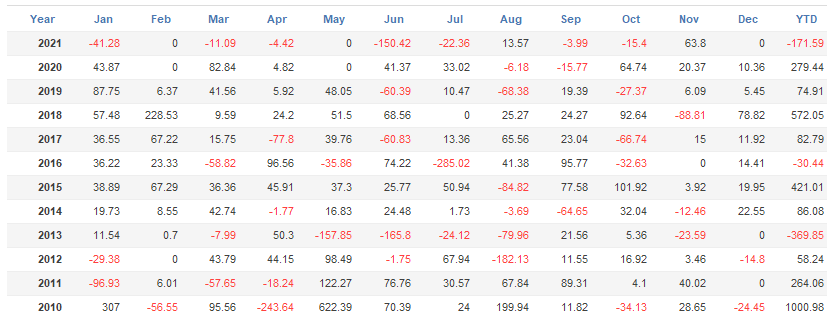 ・Risk-Return Ratio: Total Profit and Loss during the period ÷ Maximum Drawdown