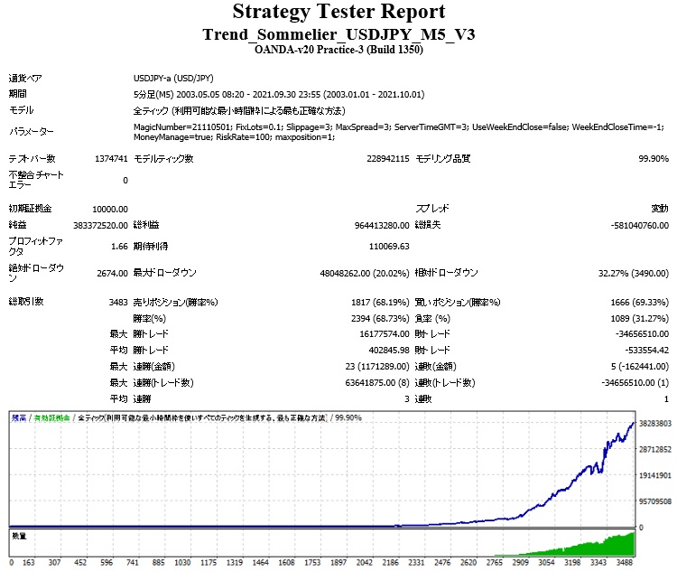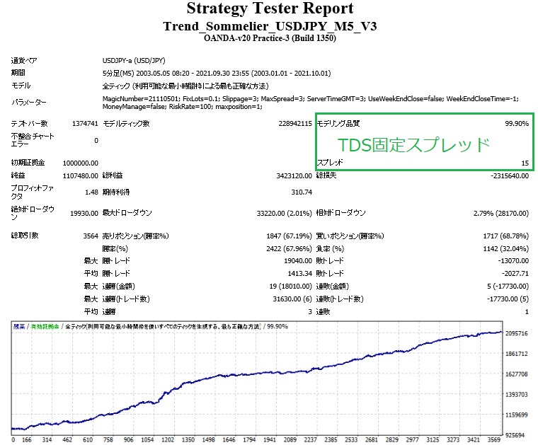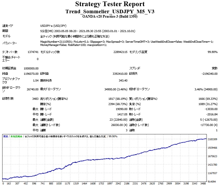 ■当EAは2003年産・18年物となっております。もちろん、始値動作、アルパリティックデータ使用スでのテイスティング、充分なスプレッドでのバックテスト・充分な期待利得でございます。後味のリカバリーファクターも充分な数値でございます。EA好きな方には至高の逸品としてご愛用して頂けると存じます。