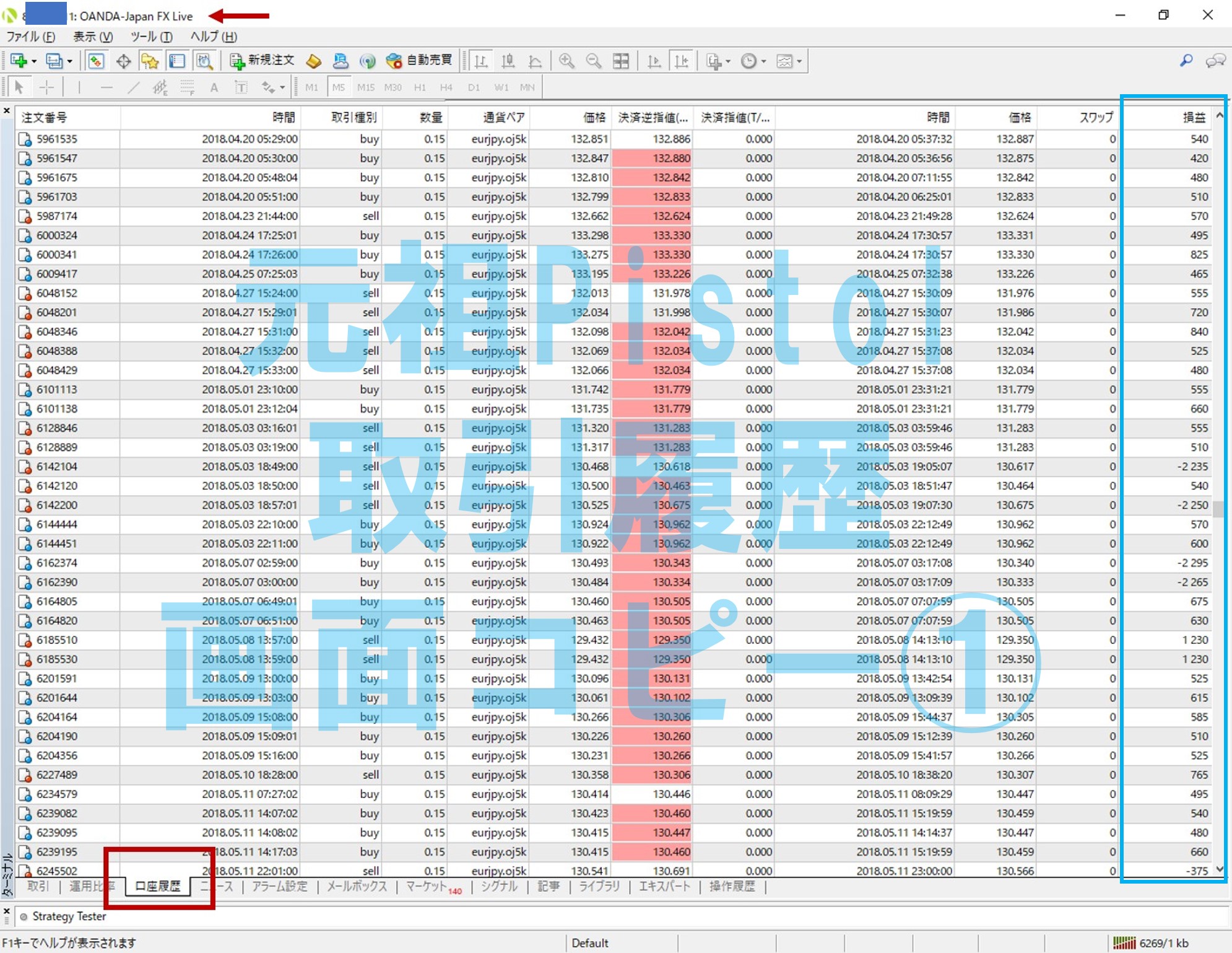 ・TP(Take Profit):EAの設定上の利確Pips(または指定された金額など)