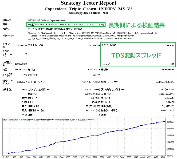 ~それがコペルニクス・トリプルクラウン~ コペルニクス・ベーシックUSDJPY版は、 おかげ様で売り上げ本数がゴゴジャン史上歴代TOP20入りしました。 最大の武器の1つとしてコペルニクス的転回ロジックによる 「他のEAとエントリーが被りにくい」という特徴があります。 であれば、 その「他のEA」のロジックも一緒にして 1つのEAにしてしまおう! というコンセプトのもと 「コペルニクス・トリプルクラウン」 を開発いたしました。