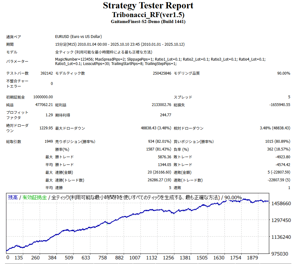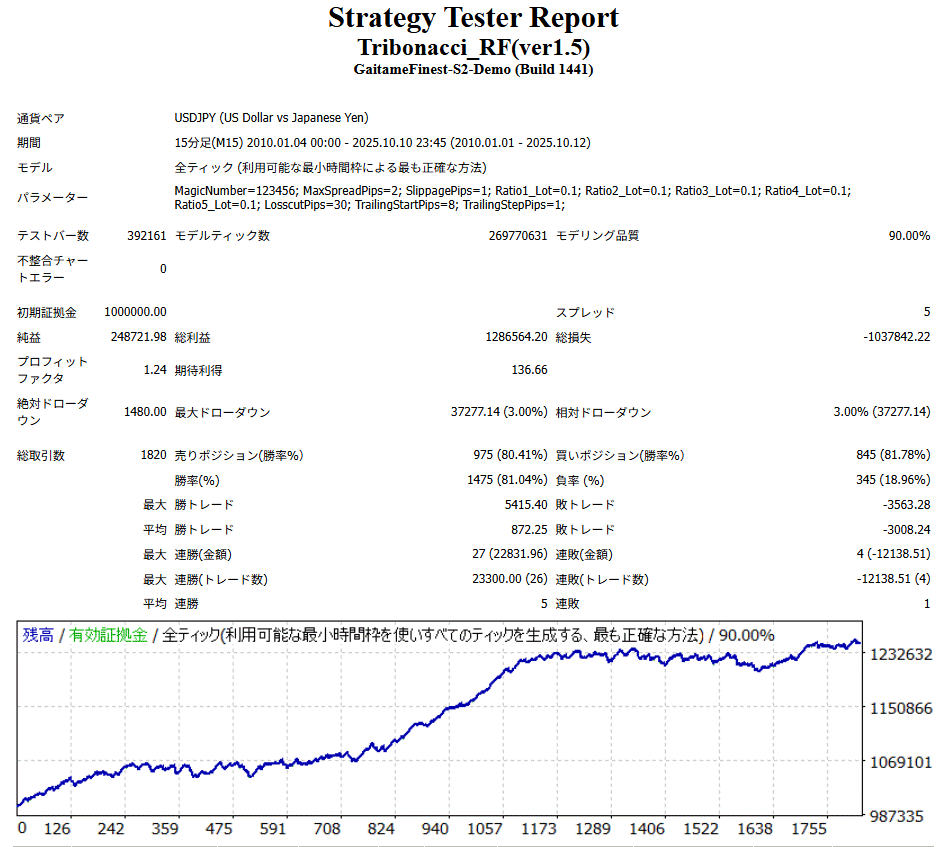 ※ブローカー/スプレッド/ヒストリデータにより結果は変動します。 ※実運用前に必ずご自身の環境で検証してください。