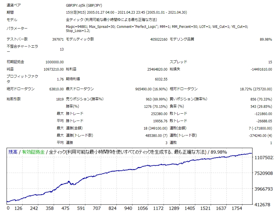 使用する証券会社の実態に合ったスプレッドのバックテストを確認することによって、実際にどれくらいの利益が出てくるのか、もしくはスプレッドに負けてマイナス収支になってしまわないかが見えてきます。