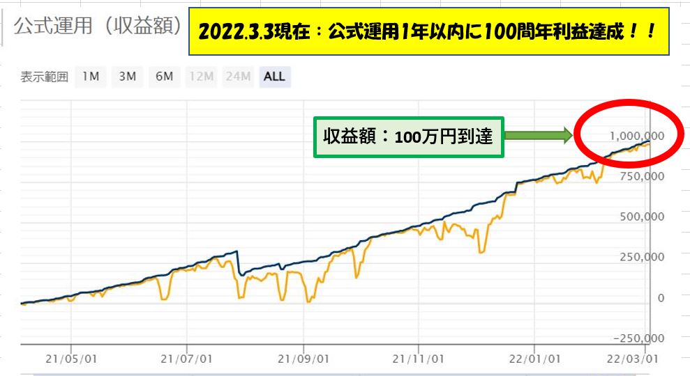 ⇒ 基本的に完全放置です。チェックや操作は必要ありません。最終的に利確する想定となっています。ただし、あえて操作するとしたら含み損の期間が長く一時的に含み損が少なくなった時に、一旦ポジションを閉じるという選択肢はあるのではないかと思います。