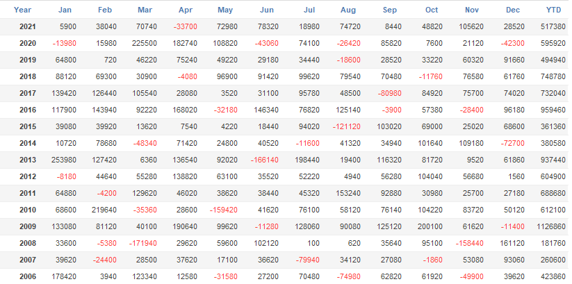 2006年から年単位での負けはありません。また、月単位での勝率は80%を超えています。