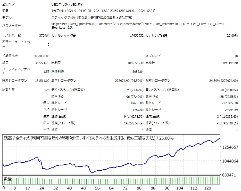 ノストラダムスの小預言はこれらの特徴を備えており、攻防に優れた高性能なEAに仕上がっています。