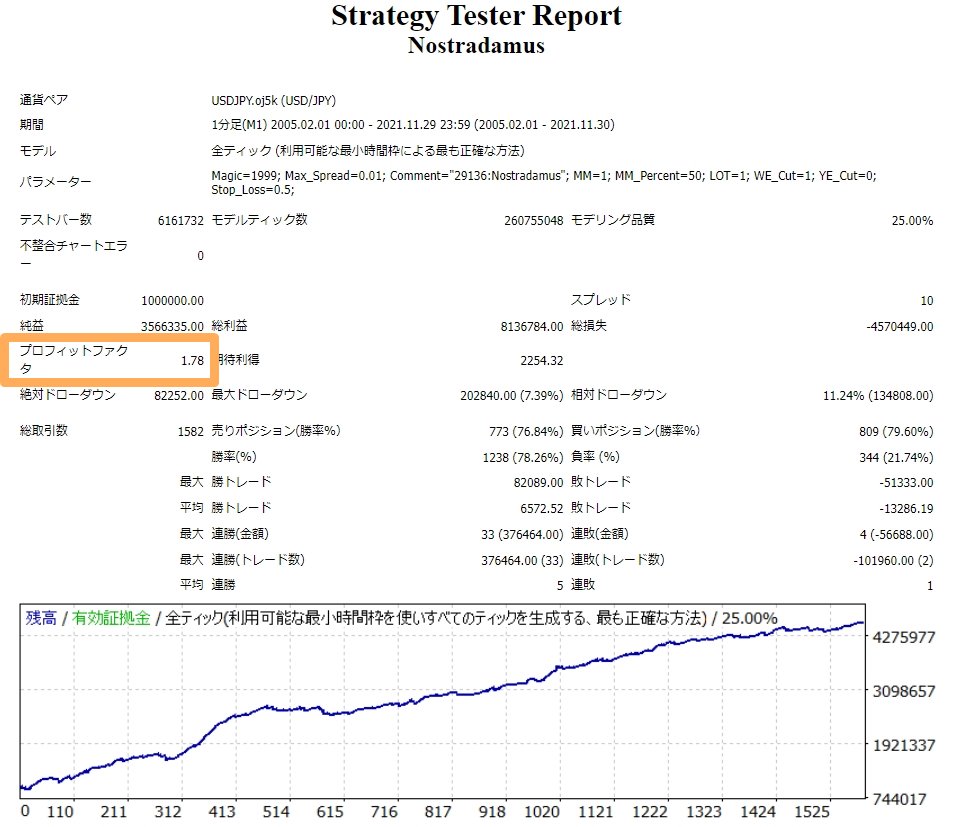 プロフィットファクターも1.78と非常に高い数値をマークしています。