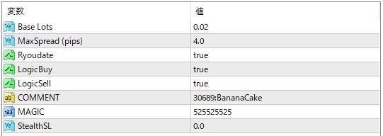 本商品は標準のストップロスはありませんが、内部ロジックによるステルスストップロス機能はあります。但し、デフォルトでは内部ストップロスは無効(0)のため強制ロスカットまで耐えます。