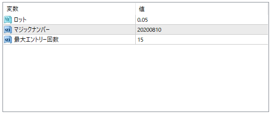 ロット ・・・ 自身の資金や環境に応じて変更してください。