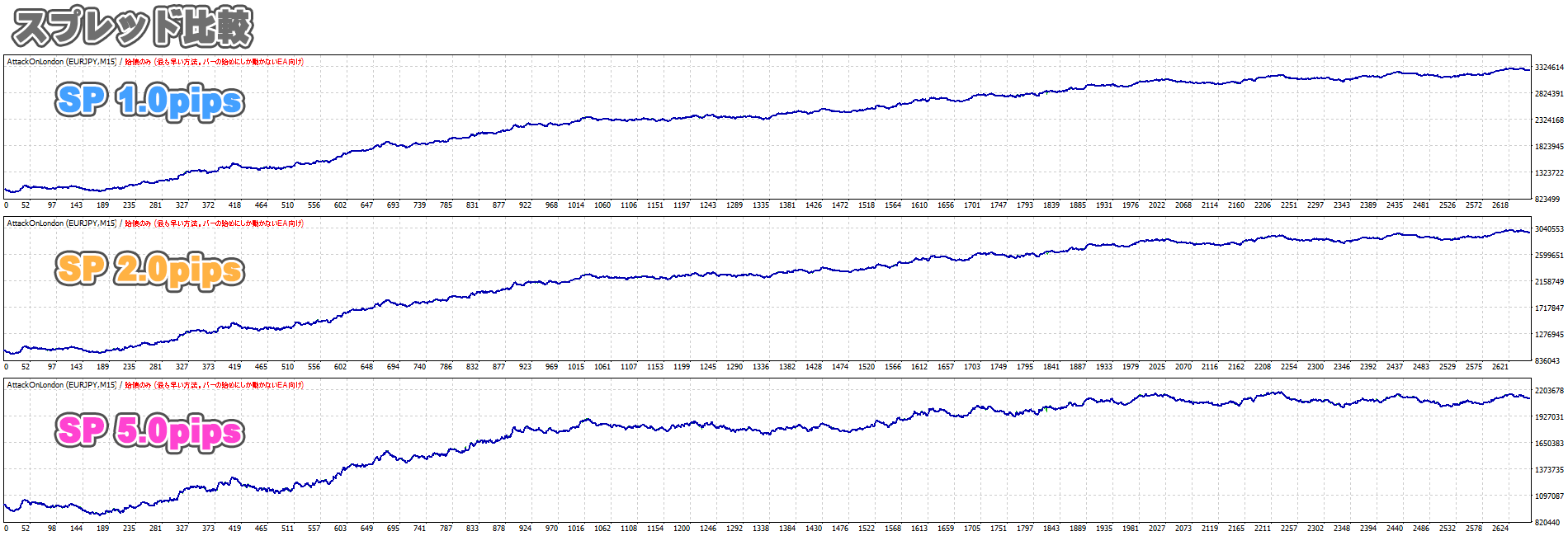 スプレッド耐性も高く、国内口座の一般的なユーロ円平均スプレッド(0.8~1.0Pips)ではもちろんのこと、