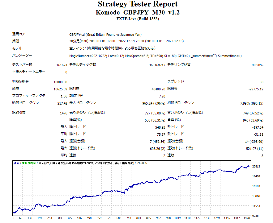 Komodoはポンド円(GBPJPY)の30分足(M30)で利益を上げられるように設計しております。