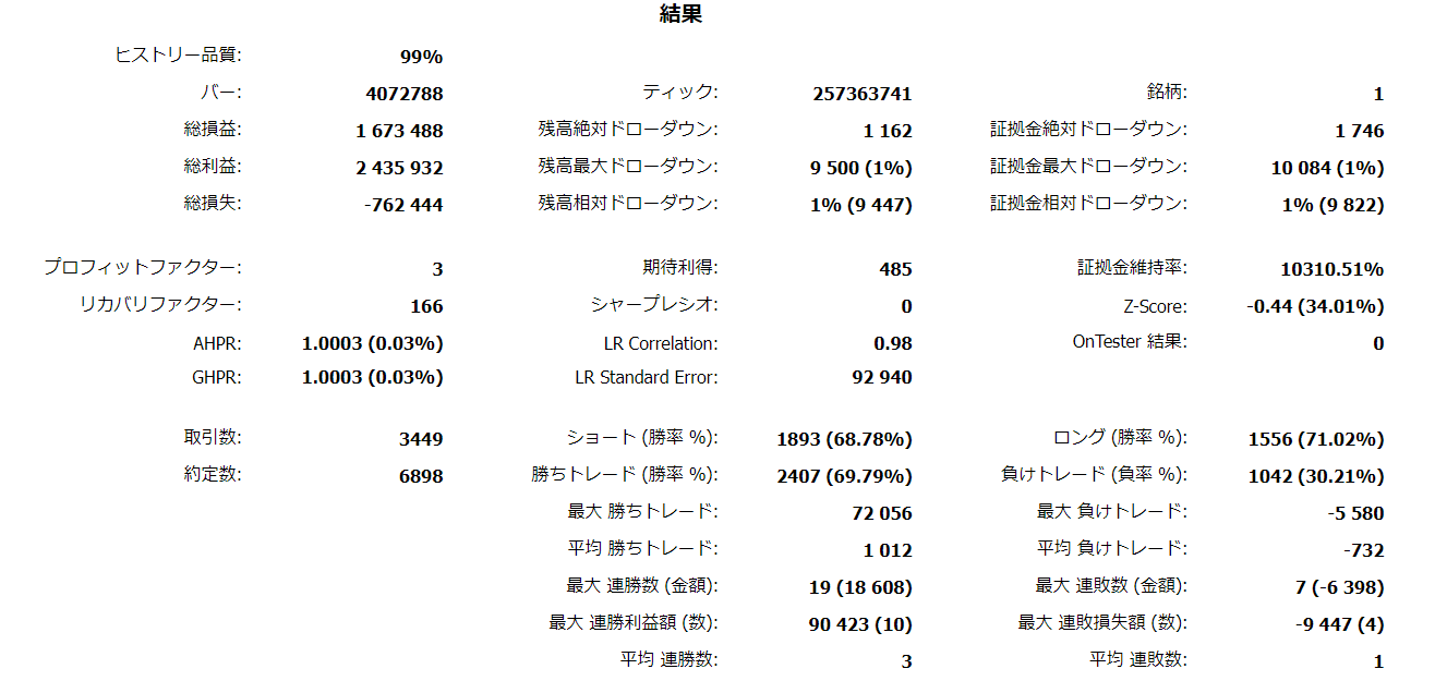 Increasing the lot size forcibly due to a high winning rate can, in rare instances, depending on the EA, lead to substantial Pips loss when a loss occurs. It is crucial to verify the SL Pips and the number of positions held before operating with an appropriate lot.