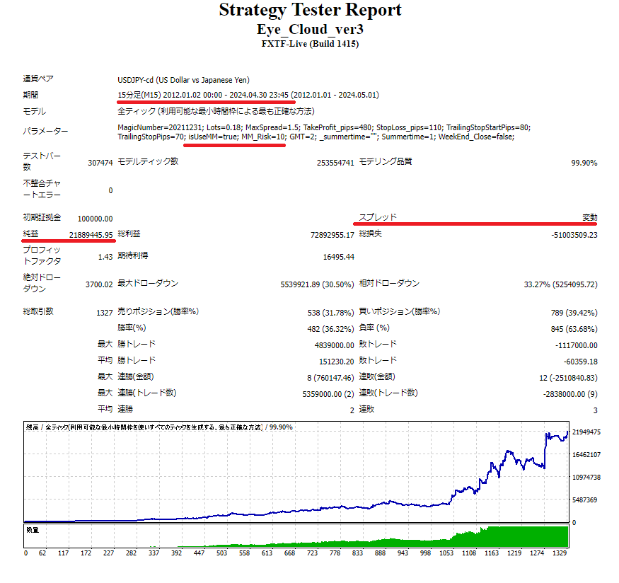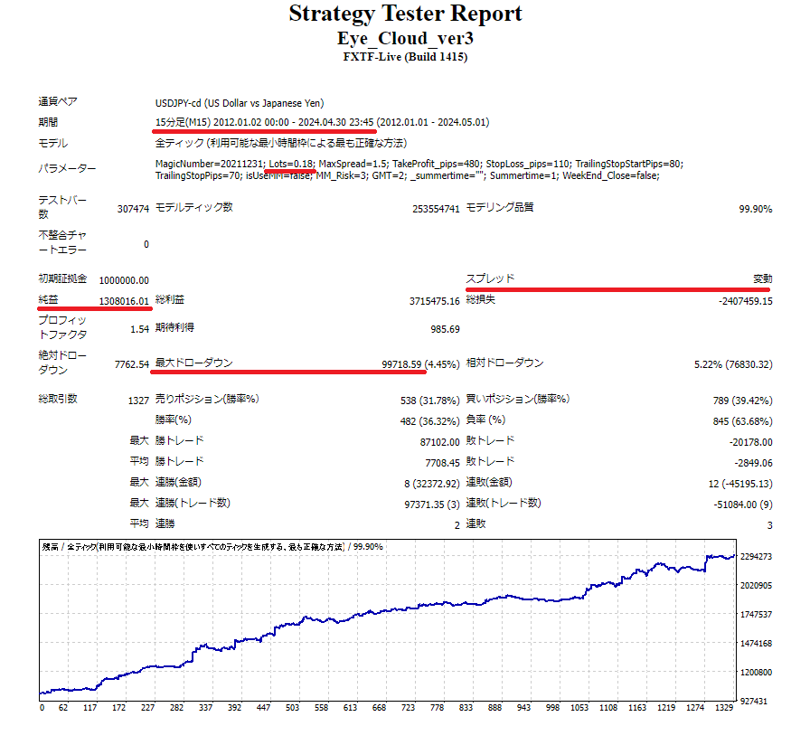 更新内容:直近5年間の相場状況に合わせて、内部パラメータ、SL/TPを最適化しました