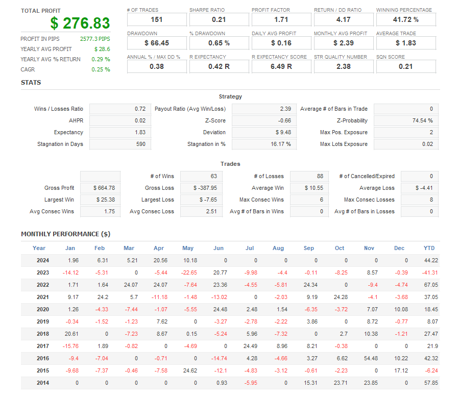 There is an absence of self-serving rule modifications, a common human tendency, such as increasing the lot size after consecutive losses in discretionary trading or, conversely, hastily securing profits with minimal gains.