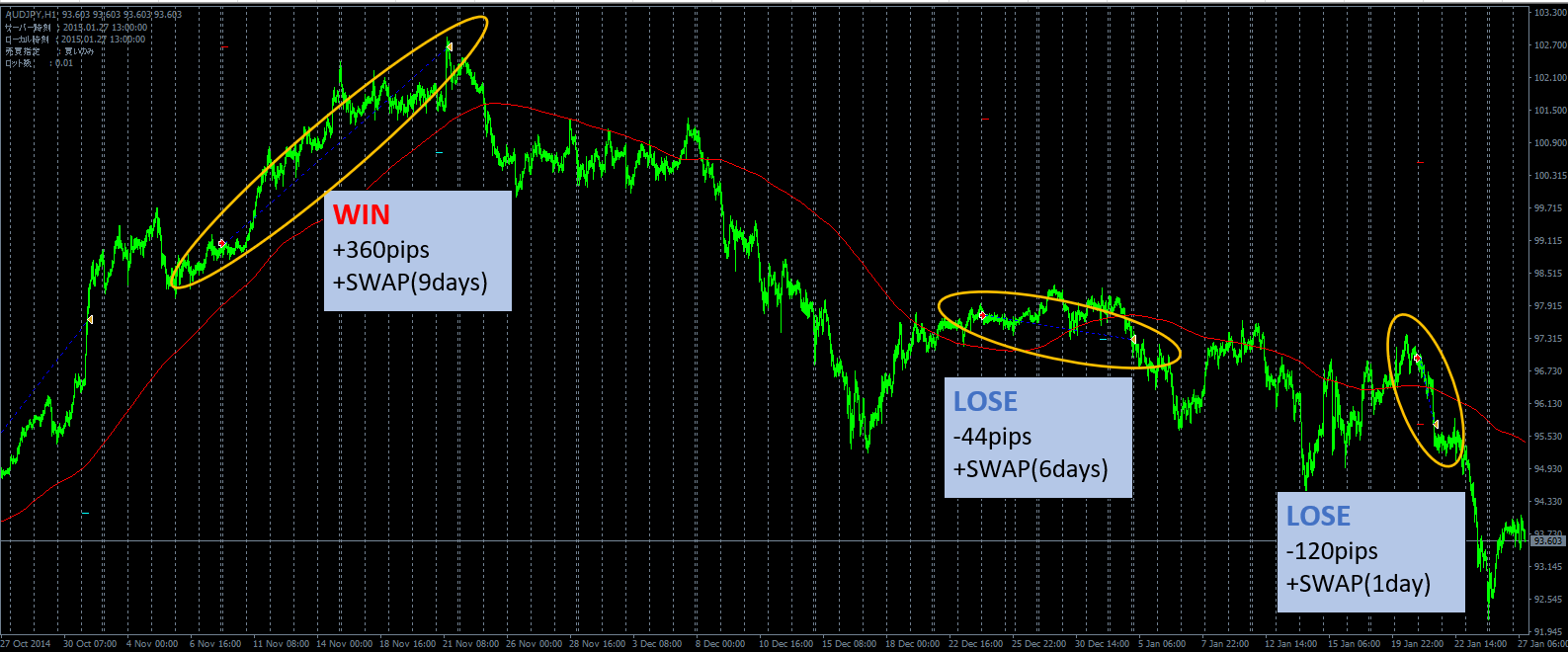 ポジションの長期ホールドは裁量ではなかなか難しいですが、EA任せにすればSWAPも獲得できて良いかと思います。