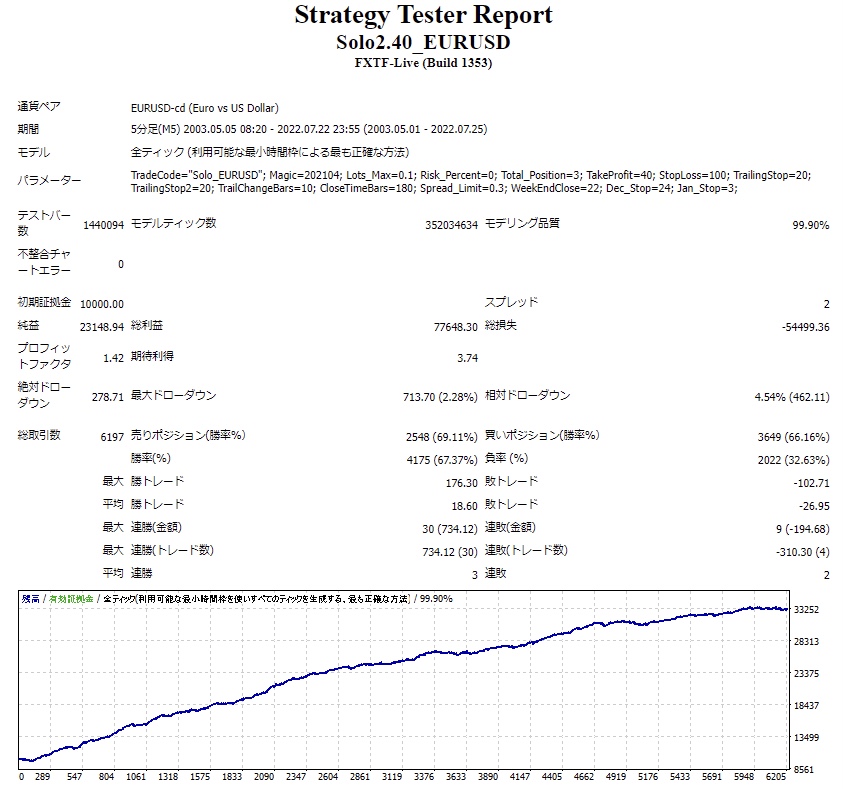 2021年12月6日から2022年8月5日まで、0.1Lotで運用した結果です。